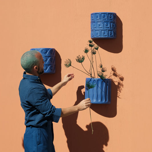 Dorico Avec Soucoupe - Pot Magna Graecia Bleu