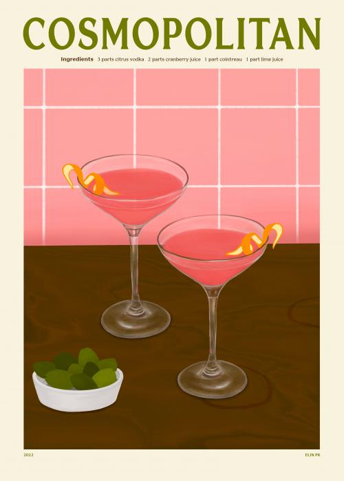 Avec ses affiches, hommage à la cuisine italienne et aux cocktails emblématiques, Elin Pk aime à nous mettre l'eau à la bouche !
