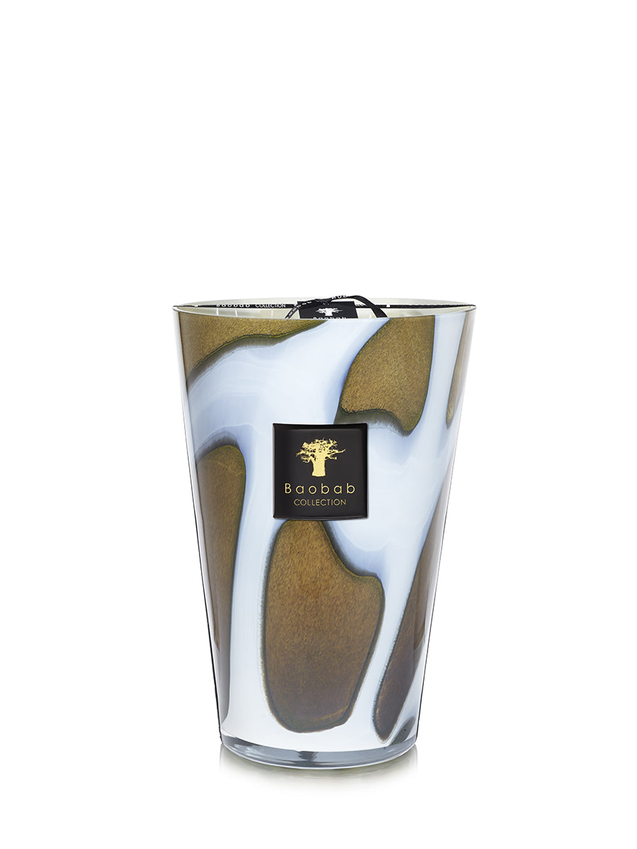 La bougie Agate, décorée de magnifiques inclusions de couleurs rappelant la pierre brésilienne, diffuse un parfum puissant et sophistiqué.