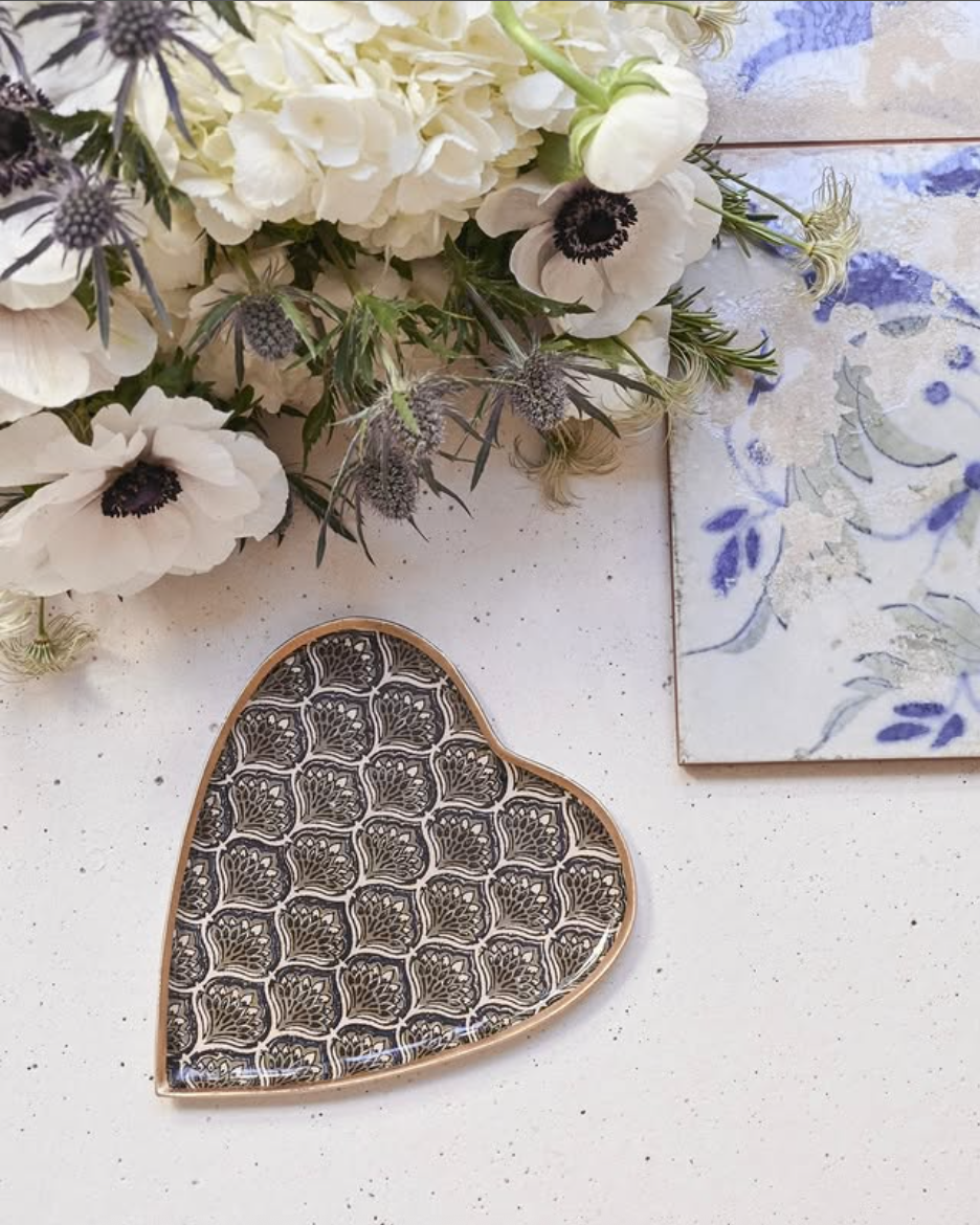 Avec son petit format, le plateau coeur Les Paons est idéal pour y déposer un café, quelques bijoux, un savon ou encore les trésors contenus par nos poches.