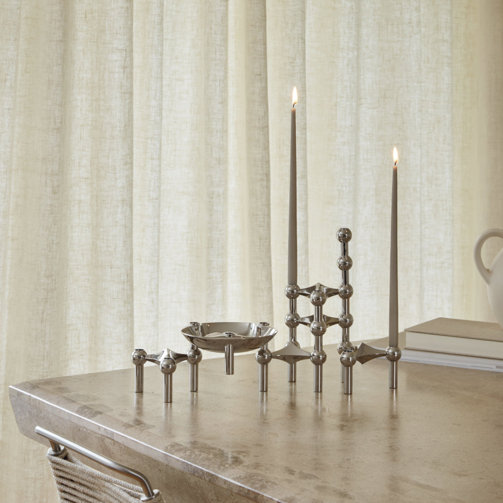 Imaginé par Hans Nagel et dessiné par l'artiste et architecte Werner Stoff dans les années 60, le bougeoir STOFF Nagel est depuis lors, une icône du design, considéré même comme une oeuvre d'art.