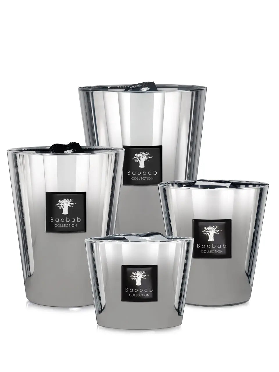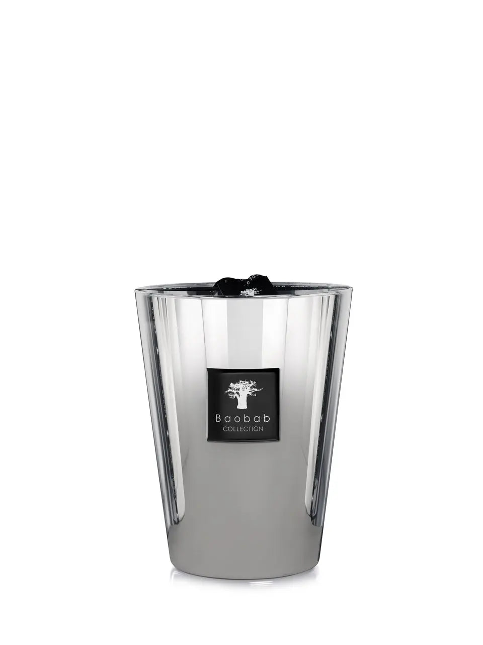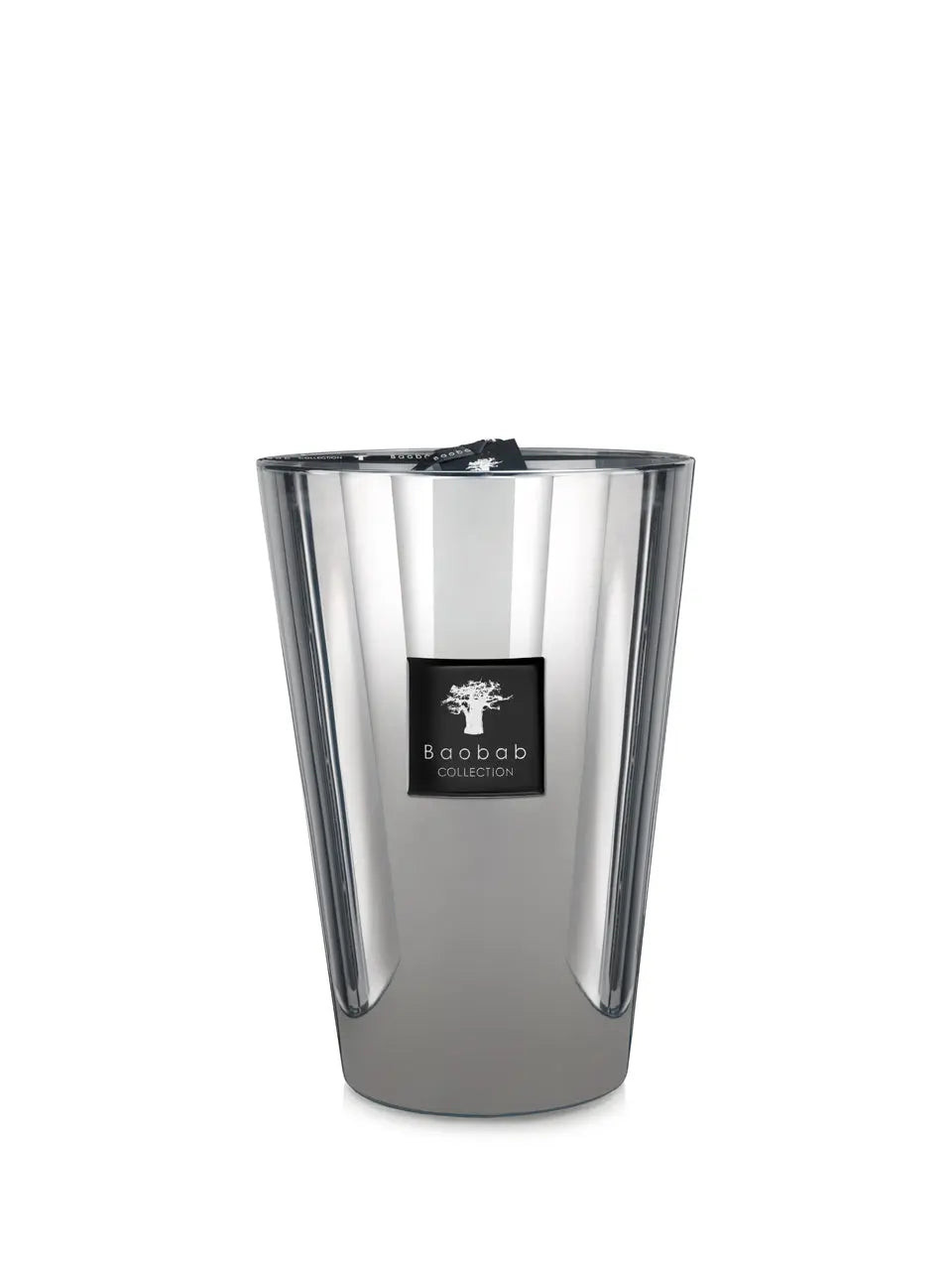 Bougie Platinum parfumée aux notes d'ambre, de pamplemousse et de vétiver.