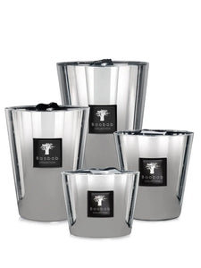 Tant par l'élégance de son vase au platine précieux, que par son parfum aux notes boisées et acidulées la bougie Platinum évoque un monde de raffinement et de délicatesse.