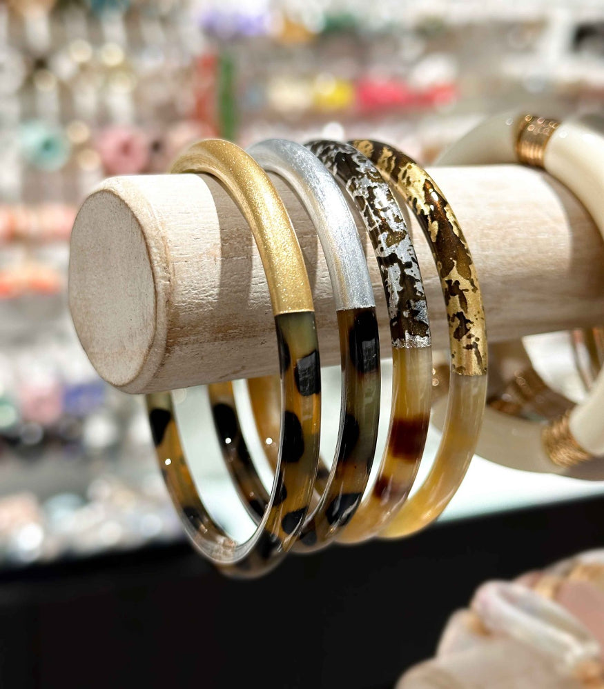 Bracelet en Corne Véritable Léopard et Feuilles d'Or - Bracelet