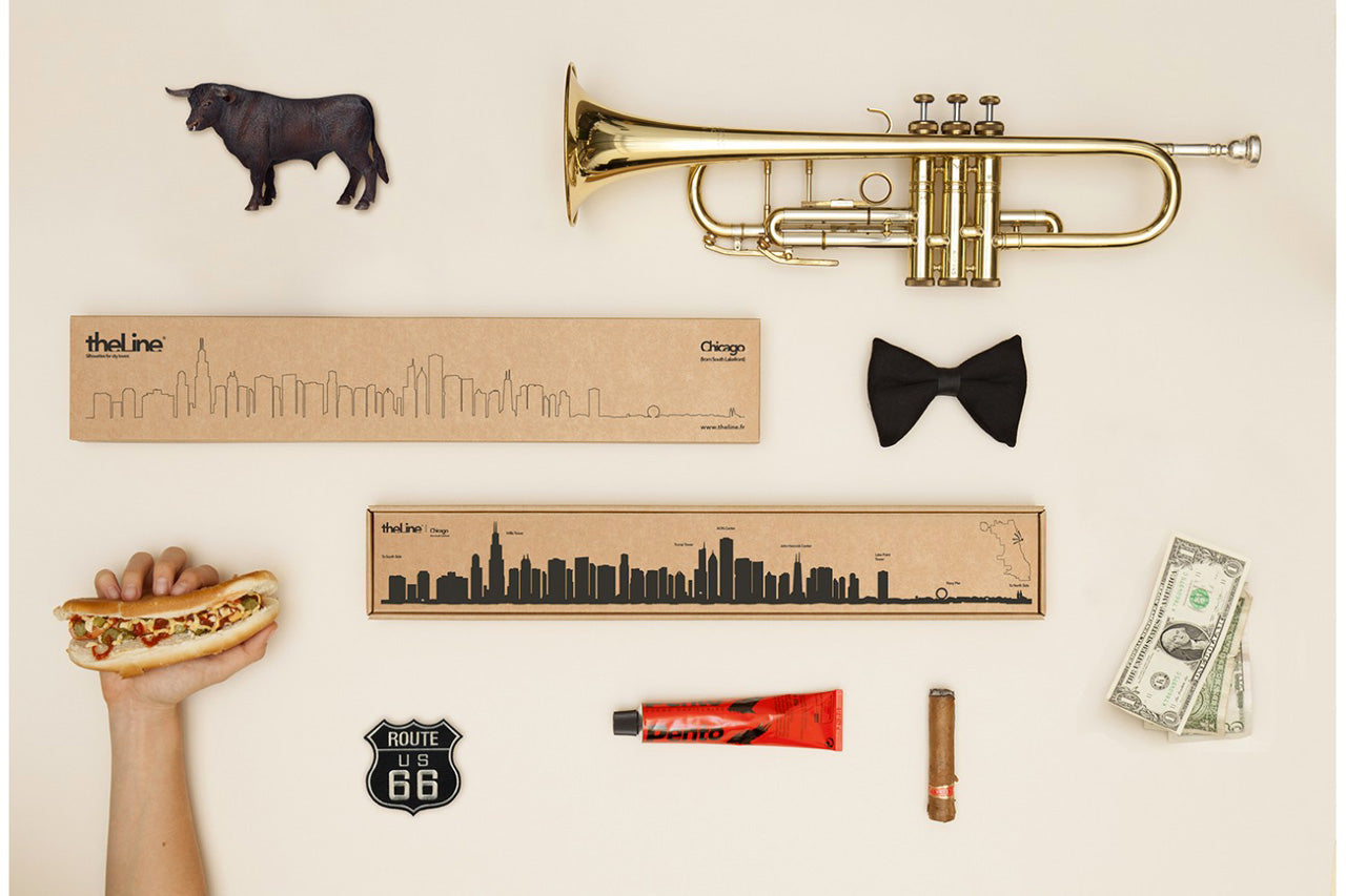 The Line a choisi de représenter Chicago et ses imposants gratte-ciels depuis la rive du mythique Lac Michigan : on y voit entre autres la Willis Tower, le John Hancock Center et le Navy Pier.