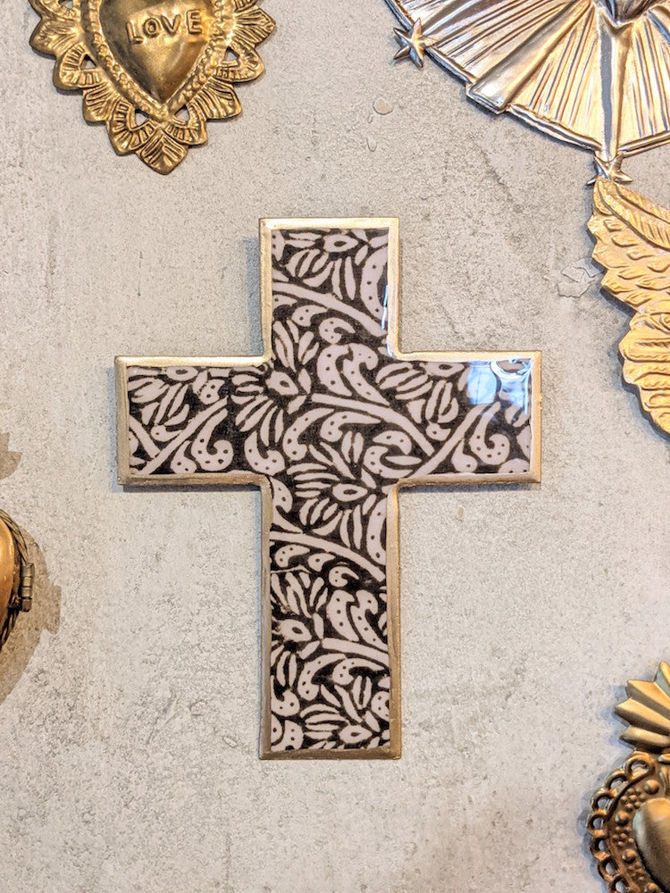 Les croix Boncoeurs apporte une touche de spiritualité et de poésie dans nos intérieurs. Tout comme les plateaux, ces croix sont ornées de motifs inspirés des "block prints" indiens, une technique d'impression au bloc de bois sur tissu.