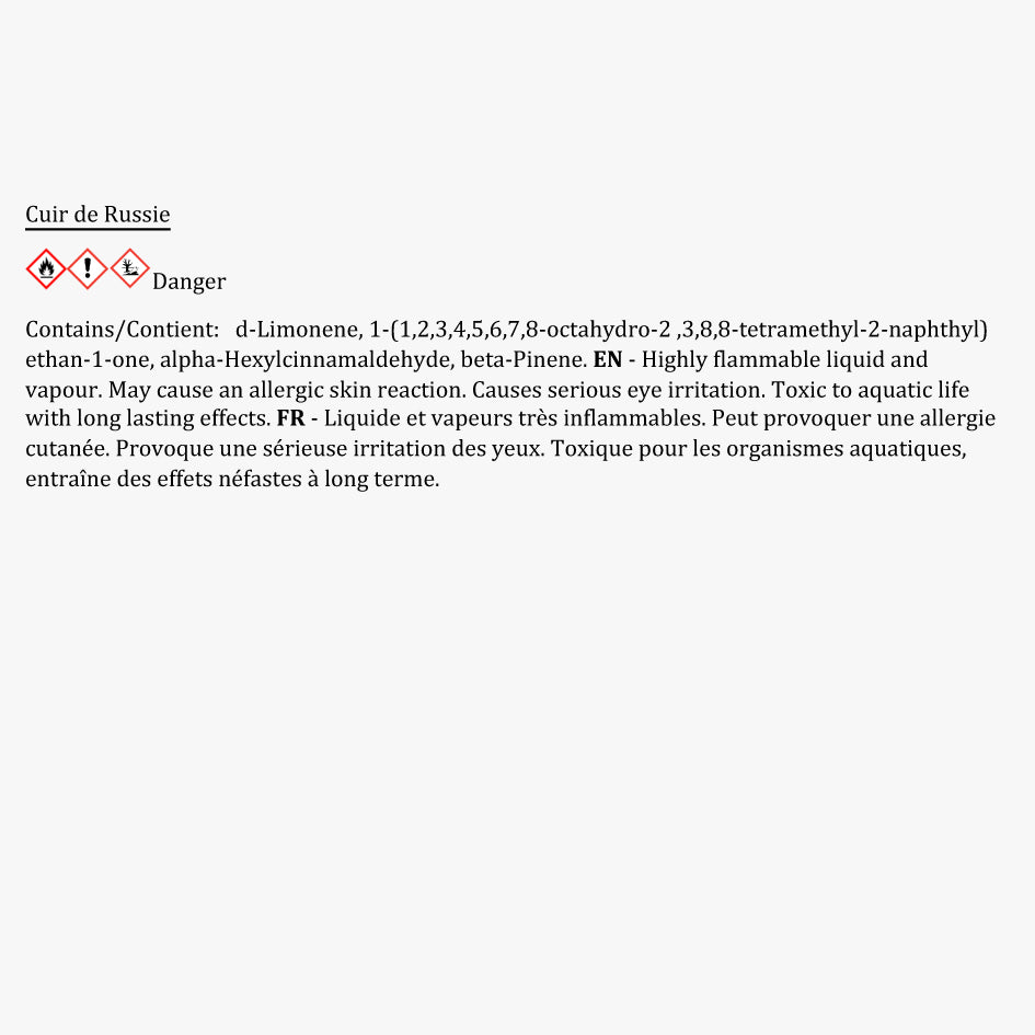 Accord de cuir et de mousse végétale rehaussé par une note de musc, le parfum de Cuir de Russie évoque la chaleur réconfortante d’un feu de bois.