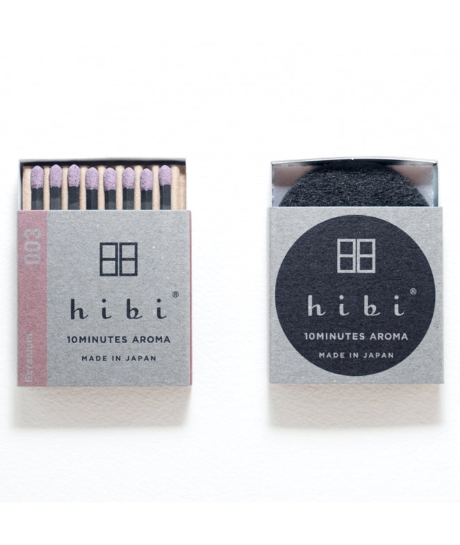 Hibi, aux parfums bruts et francs, est né de l'union de deux savoir-faire traditionnels : l'encens de l'île d'Awaji (berceau de la culture de l'encens) et les allumettes d'Harima.