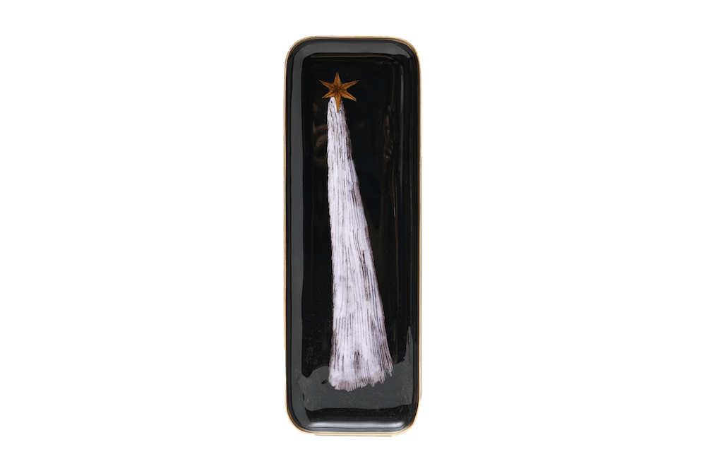 Plateau 100 % aluminium émaillé, finition bordure dorée à la main