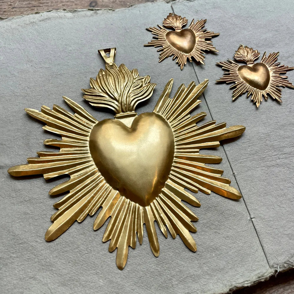 Ex-Voto en fer blanc, patiné doré à la main