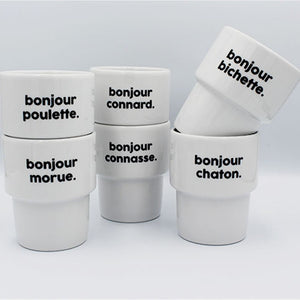 Surnoms rigolos ou douces insultes, ces tasses sont l'occasion rêvée de faire passer un message... comme dit le proverbe, "qui aime bien châtie bien !"