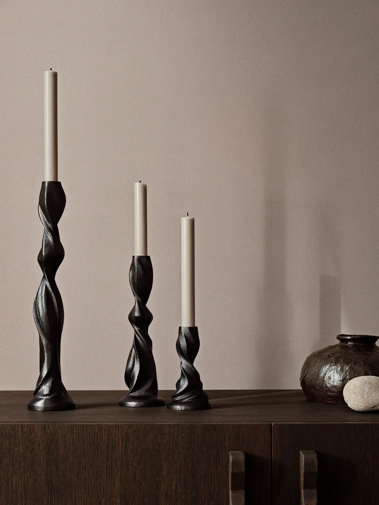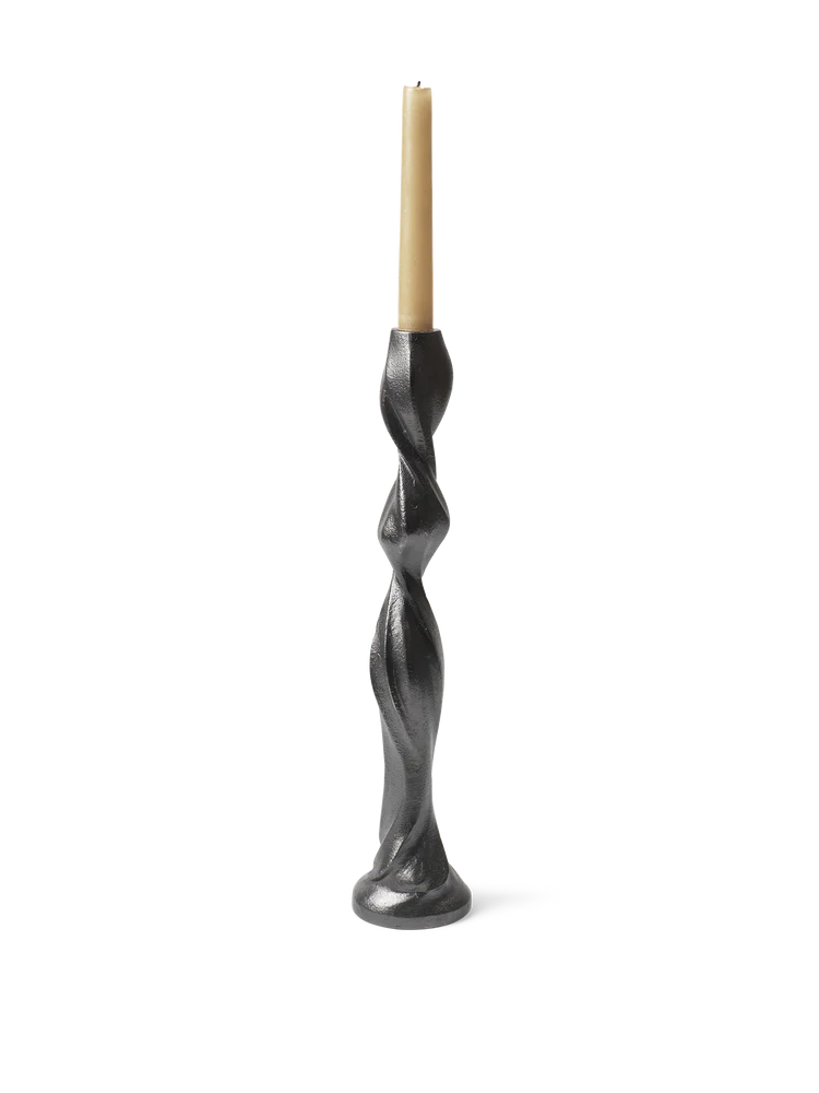 Avec son allure sculpturale et ses courbes tortueuses inspirées d'une tempête, ce grand bougeoir se dévoile au gré des perspectives.