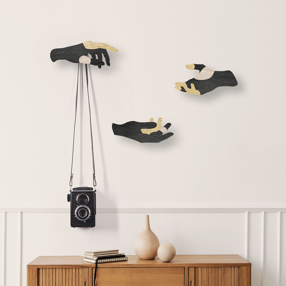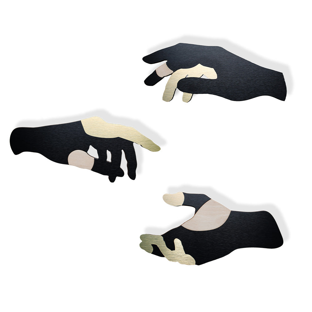 La designer Elsa Pochat imagine pour Ibride "Des mains habiles", un set de 3 patères, inspirés par les artisans et leur savoir-faire.