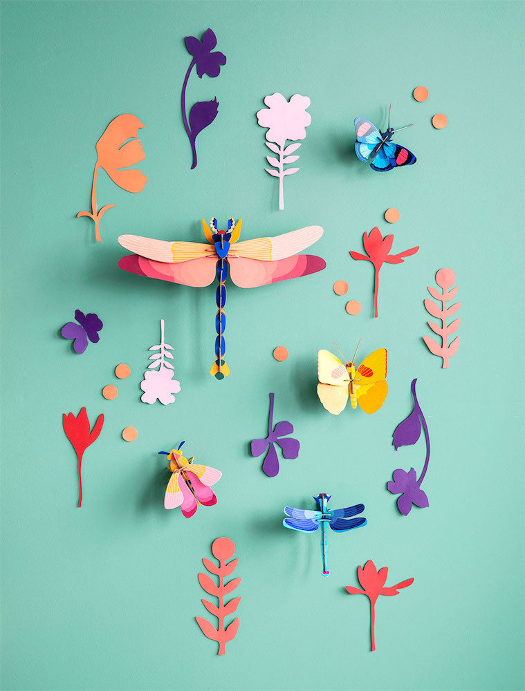 Petits insectes ou T-rex géant, dans un bureau ou dans une chambre d'enfant, Laissez-vous séduire par l'univers sauvage et coloré de Studio Roof : des animaux en carton recyclé à monter soi-même, pour faire de votre intérieur une véritable jungle !