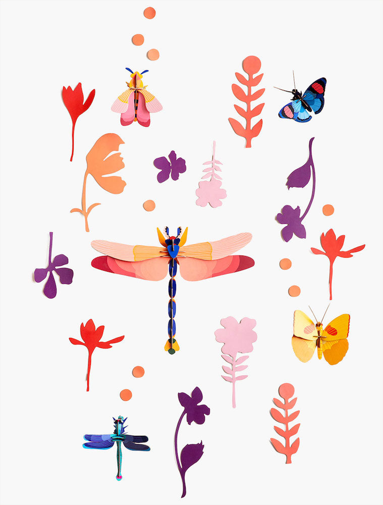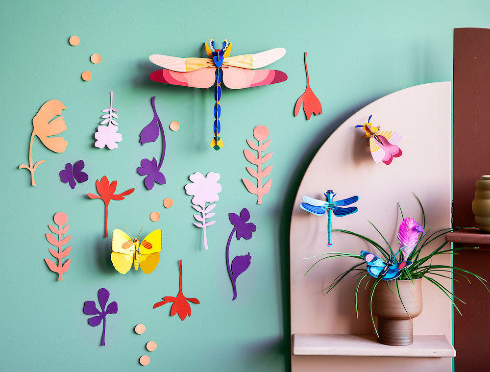 Mur de curiosités en 3D à assembler comprenant 5 insectes et 12 fleurs pop-out