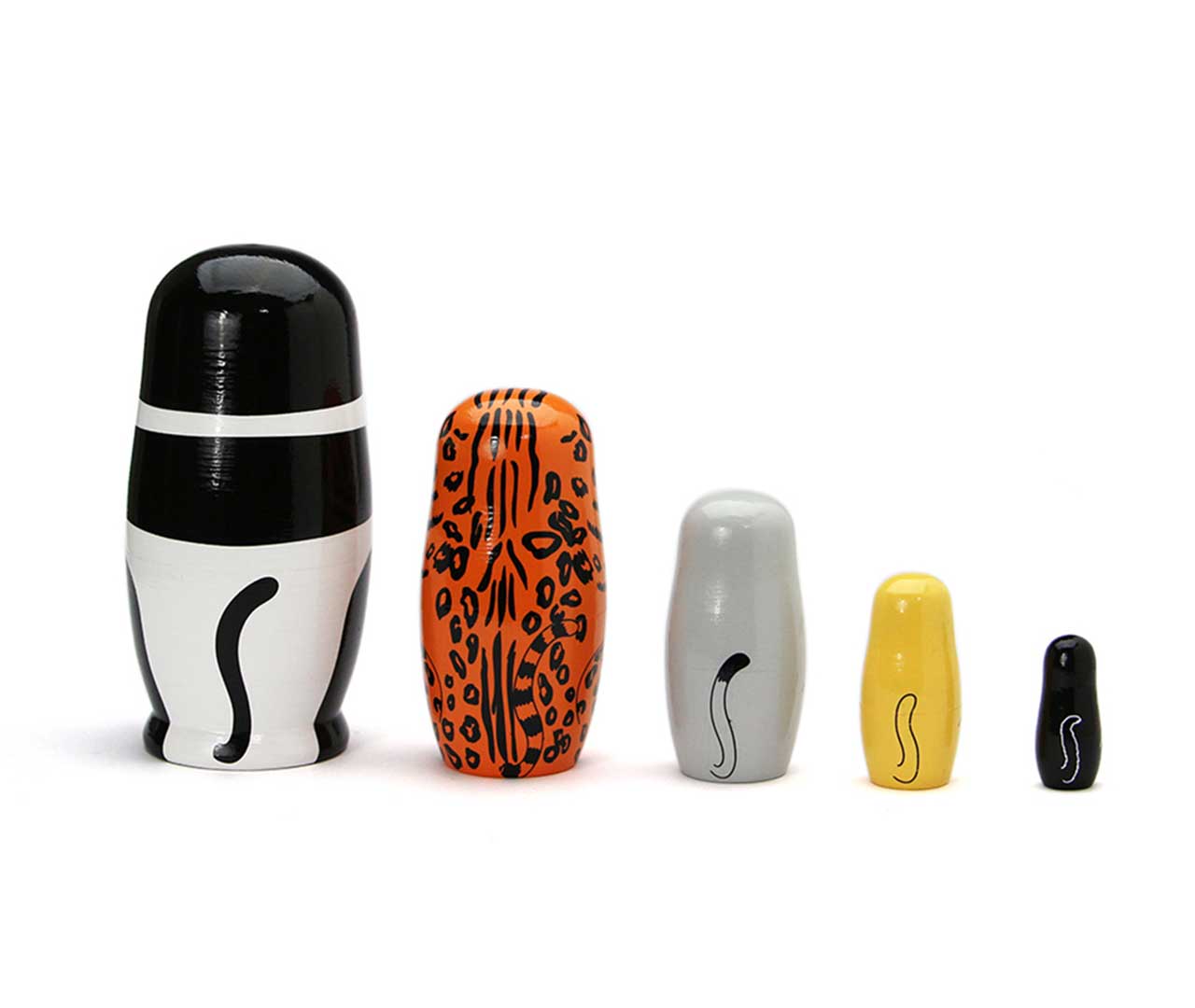 La collection Matriochka, illustrée par Midori Komatsu, explore le principe des Poupées russes en abordant des thèmes contemporains tels que la pop culture, la famille ou les animaux.