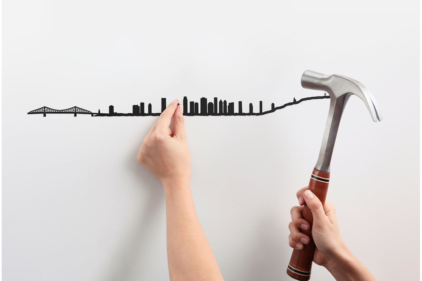 The Line sublime la silhouette des villes en une ligne pure d'acier, pour une décoration à la fois sobre et urbaine.