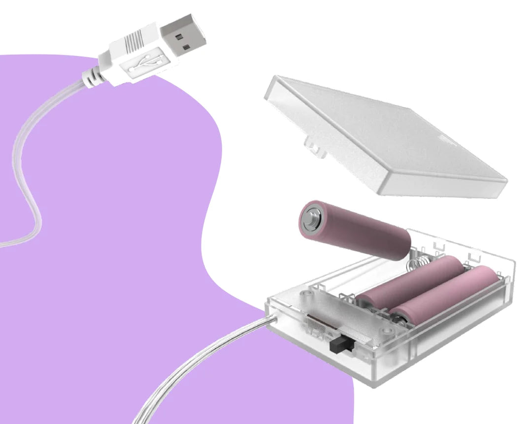 Deux manières de l'allumer : se branche avec son alimentation USB ou avec 3 piles AA (piles non fournies)
