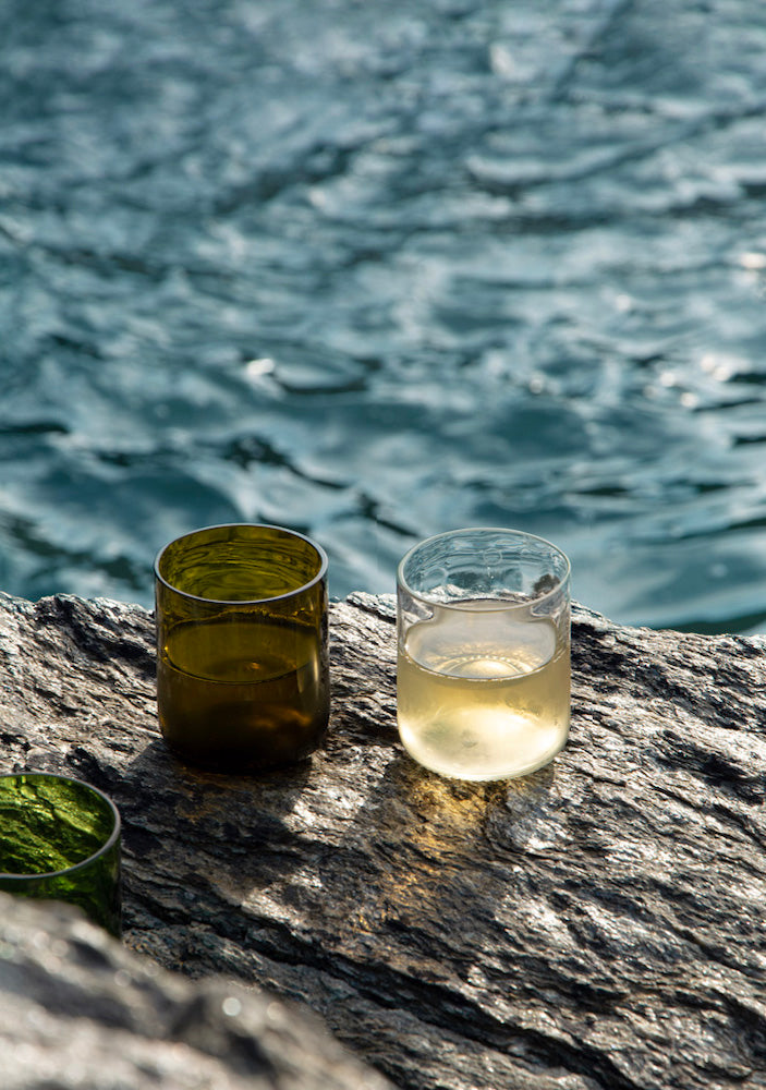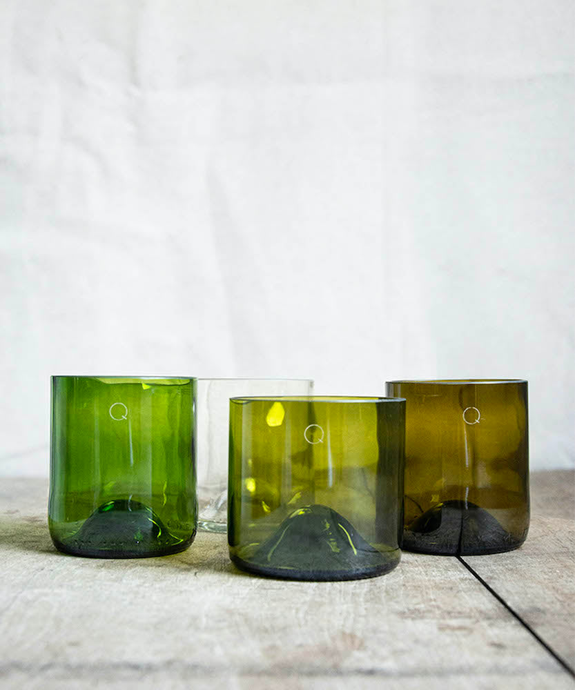 Les verres Q de Bouteilles sont façonnés dans leur atelier au Touquet, à partir de bouteilles collectées chez des restaurateurs de la Baie de Somme.