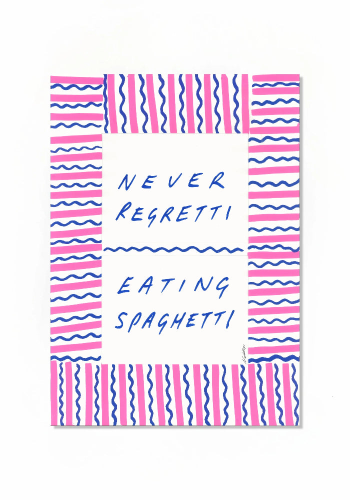 Pink Stripes Never Regret Eating Spaghetti - Affiche A4