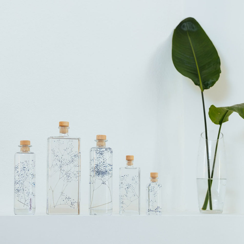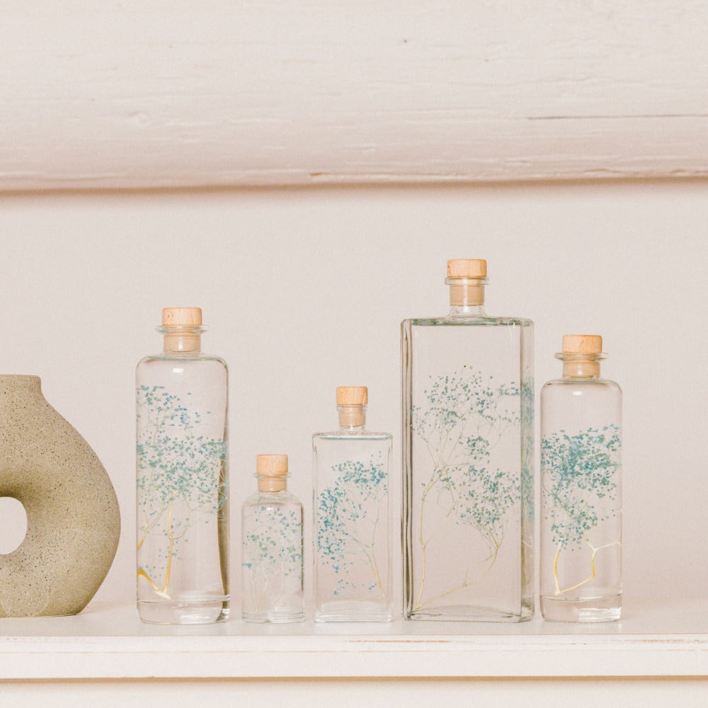 Chaque plante est soigneusement sélectionnée et insérée à la main dans un joli flacon d'apothicaire, pour y être conservée indéfiniment.
