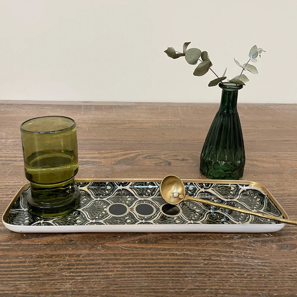 Paon, tigre et éléphant, ces animaux emblématiques, sont représentés de manière figurative sur certains plateaux, symbolique sur d'autres, pour un mix and match qui apporte du caractère à notre décoration.