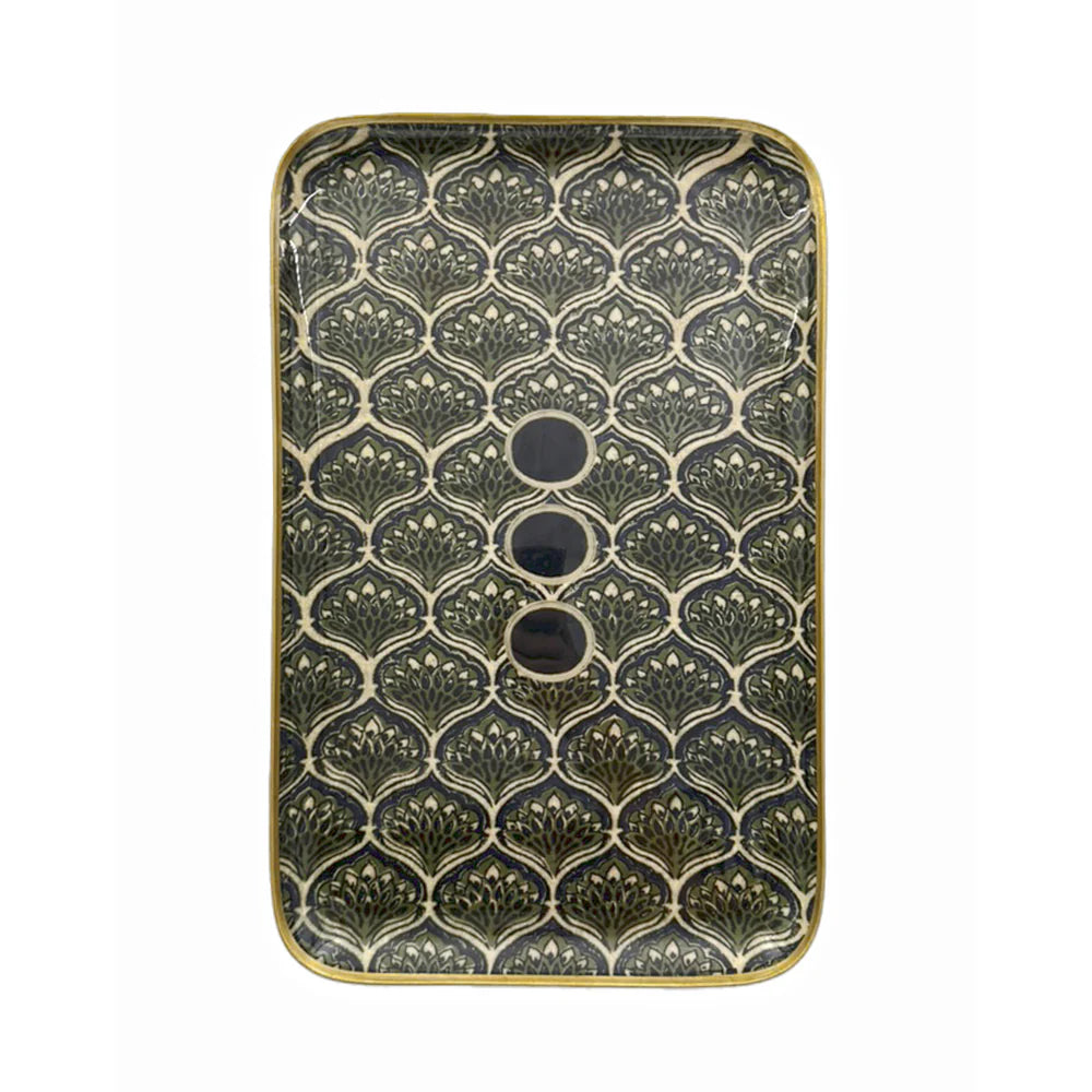 Plateau 100 % aluminium émaillé, finition bordure dorée à la main