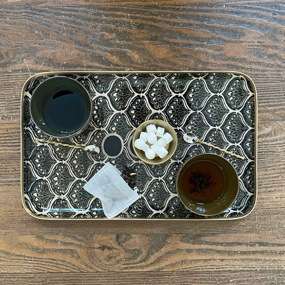 Paon, tigre et éléphant, ces animaux emblématiques, sont représentés de manière figurative sur certains plateaux, symbolique sur d'autres, pour un mix and match qui apporte du caractère à notre décoration.