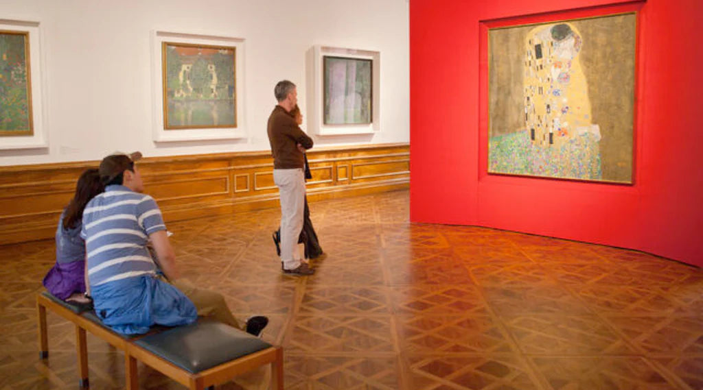 Peint entre 1907 et 1908 Le Baiser est sans doute son oeuvre la plus emblématique. Elle représente un couple enlacé dans une étreinte suspendue. Ce couple est-il celui de l'artiste let de sa muse, Emilie Flöge, styliste de mode ?