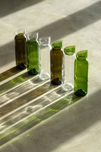 Les teintes varient selon les bouteilles, offrant ainsi une palette de nuances aux subtils dégradés, du transparent parfait aux élégantes alliances de verts et de jaunes.