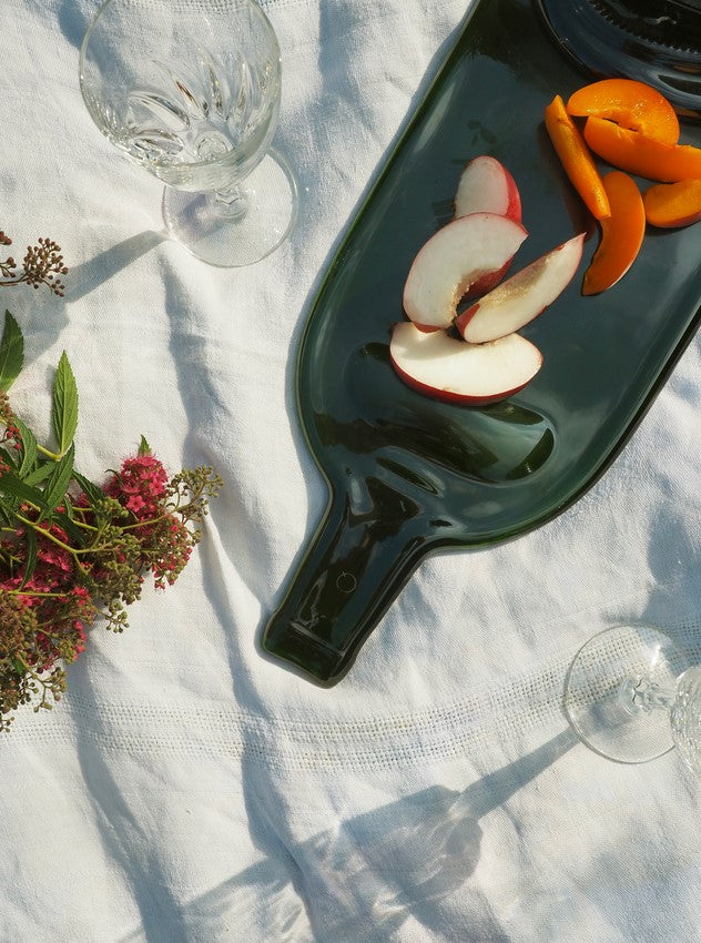 Les verres Q de Bouteilles sont façonnés dans leur atelier au Touquet, à partir de bouteilles collectées chez des restaurateurs de la Baie de Somme.