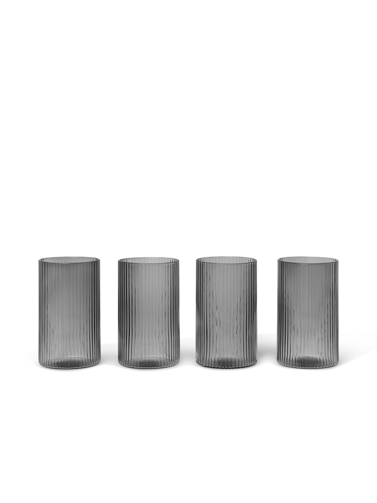 Fabriquée en verre soufflé bouche, la série Ripple propose un ensemble de 4 verrines en verre fumé. Pour un apéritif tout en élégance...