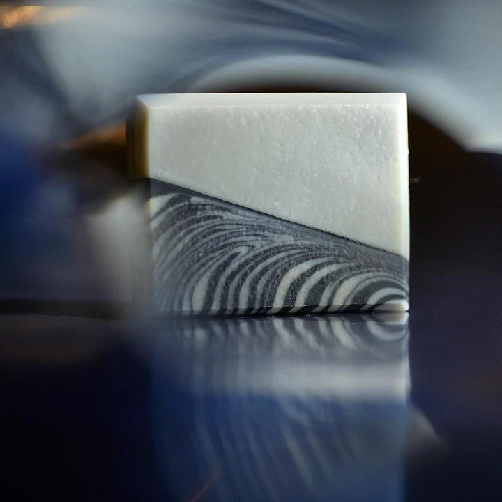 Huile d'olive, Beurre de karité, Huile de coco, Eau, Hydroxyde de sodium, Huile de ricin, Huile d'onagre, Cire d'abeille, Argile bleue française, Charbon actif, Oxyde bleu