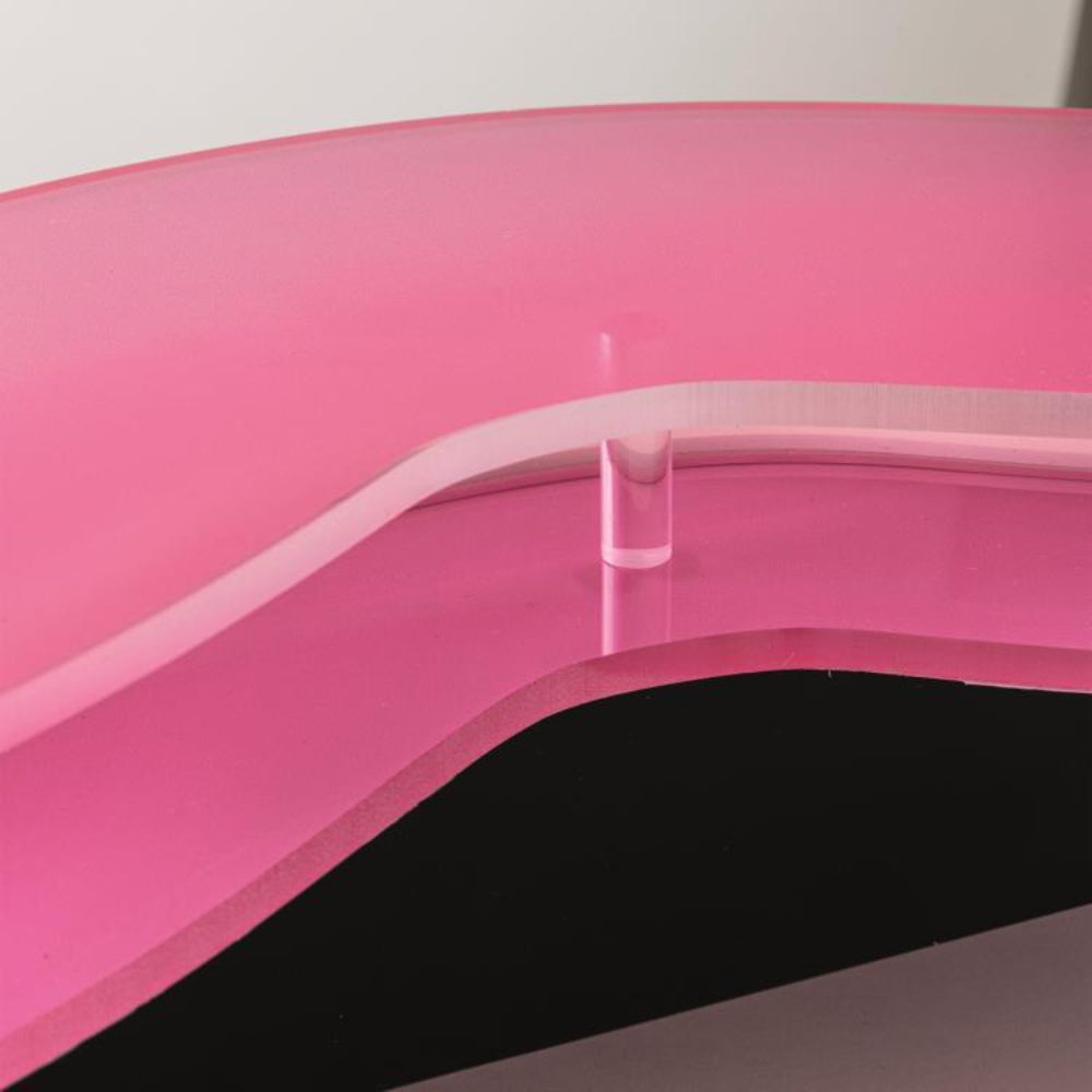 Ce miroir de la collection Supercurve nous plonge dans un style disco seventies avec sa forme de fleur simplifiée et sa lumière rose flashy.