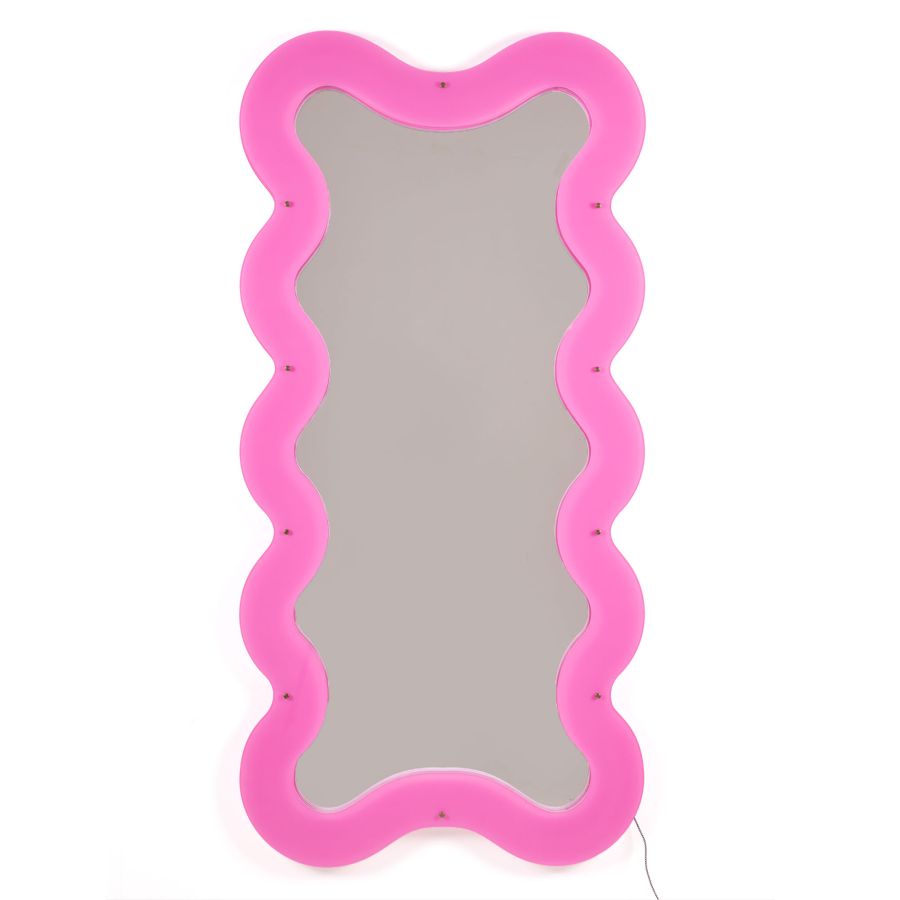 Ce miroir de la collection Supercurve nous plonge dans un style disco seventies avec sa forme ondulante et sa lumière rose flashy.
