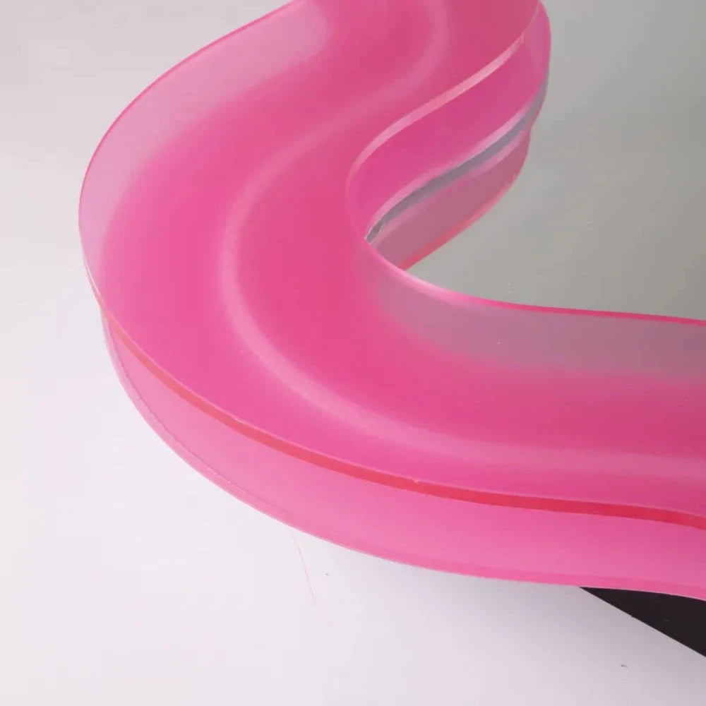 Ce miroir de la collection Supercurve nous plonge dans un style disco seventies avec sa forme de fleur simplifiée et sa lumière rose flashy.