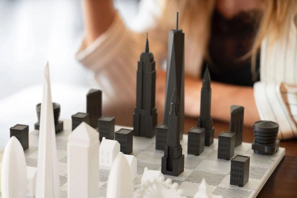 Pour New-York, le Guggenheim est la tour, le Flatiron Building est le chevalier, le Chrysler Building est un fou incroyablement puissant, tandis que la grandeur indéniable de l'Empire State Building en fait la reine parfaite et le design poignant et impeccable de One World Trade Tower est le seul choix pour le roi dans cet ensemble.