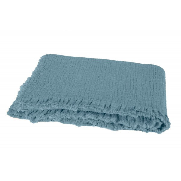 Les plaids en voile de coton "Vanly" de la marque Harmony sont joliment frangés. Ils se déclinent en couleurs et formats pour s'adapter parfaitement à nos intérieurs. Le petit plus : ils sont fabriqués en Europe.